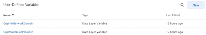 - Add custom dimension values - {{OrgInfoServiceProvider}} and {{OrgInfoNetworkDomain}} - with index numbers matching the settings for the respective OrgInfo custom dimensions in Google Analytics.
